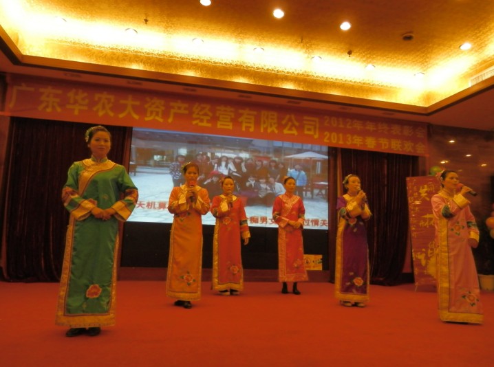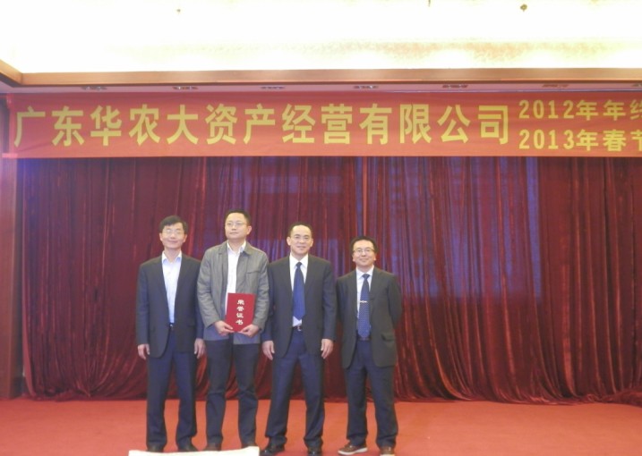 2012年1月25日下午,廣東華農(nóng)大資產(chǎn)經(jīng)營有限公司聯(lián)歡大會在廣州源華酒店隆重舉行,我司作為屬下企業(yè)參與了本次會議。大會共分為三個環(huán)節(jié),第一個環(huán)節(jié):年度優(yōu)秀集體與個人的表彰大會;第二個環(huán)節(jié):各企業(yè)節(jié)目表演;第三個環(huán)節(jié):晚宴與抽獎。