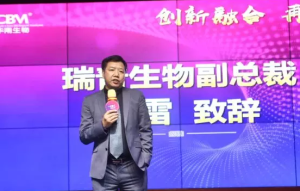瑞普生物副總裁徐雷致辭,首先代表瑞普生物對(duì)公司2019年取得的驕人成績(jī)致以衷心的祝賀!2019年是華南生物開拓創(chuàng)新的一年,市場(chǎng)的高速發(fā)展為企業(yè)帶來(lái)了新的機(jī)遇;2020年,希望華南生物在產(chǎn)品升級(jí)和技術(shù)服務(wù)上發(fā)揮創(chuàng)新優(yōu)勢(shì),在未來(lái)多變的市場(chǎng)競(jìng)爭(zhēng)中,精準(zhǔn)定位,立足打造禽流感高端產(chǎn)品戰(zhàn)略。