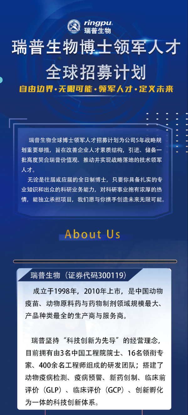 官宣第二彈 | 瑞普生物博士領(lǐng)軍人才全球招募計劃