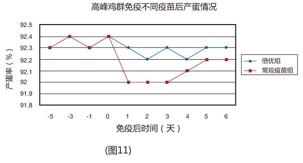 產(chǎn)蛋雞產(chǎn)蛋高峰時(shí)免疫倍優(yōu)?系列產(chǎn)品,產(chǎn)蛋率基本無(wú)影響(圖11)。