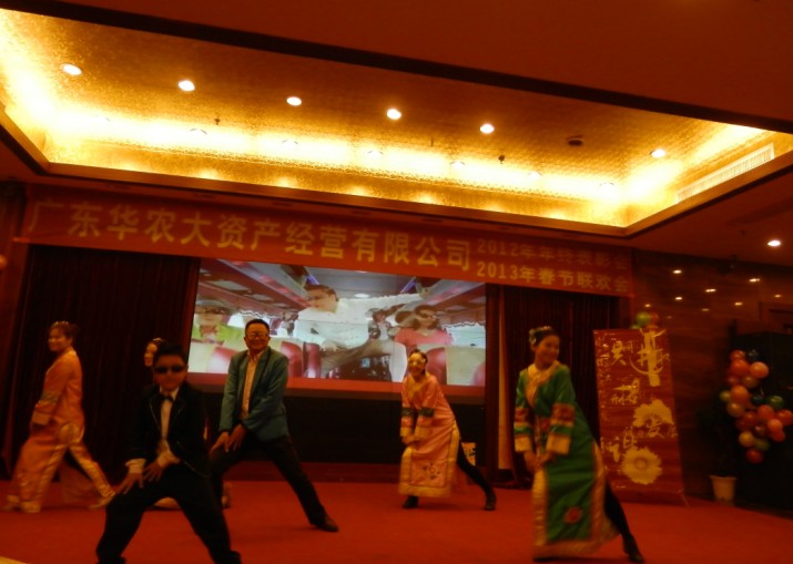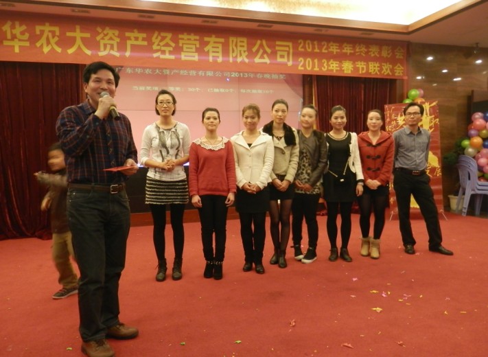 2012年1月25日下午,廣東華農(nóng)大資產(chǎn)經(jīng)營有限公司聯(lián)歡大會在廣州源華酒店隆重舉行,我司作為屬下企業(yè)參與了本次會議。大會共分為三個環(huán)節(jié),第一個環(huán)節(jié):年度優(yōu)秀集體與個人的表彰大會;第二個環(huán)節(jié):各企業(yè)節(jié)目表演;第三個環(huán)節(jié):晚宴與抽獎。