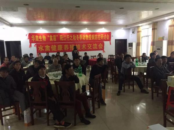 2017年11月20日和21日由廣州市華南農(nóng)大生物藥品有限公司主辦的水禽健康養(yǎng)殖技術(shù)交流會在美麗的濱海旅游城市陽江市勝利舉辦。陽江市是廣東省四大優(yōu)良鵝種之一--陽江鵝的主產(chǎn)地,因此養(yǎng)殖戶對于當前水禽主要流行疫病關(guān)注度比較高,參會熱情高漲,參會人員共100余人,會議成果遠超預(yù)期,圓滿結(jié)束。